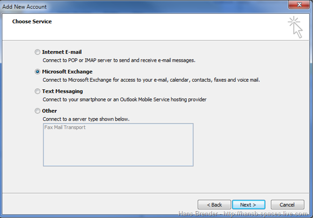 Hier müssen wir jedoch auf die manuelle Konfiguration zurückgreifen und wählen Microsoft Exchange