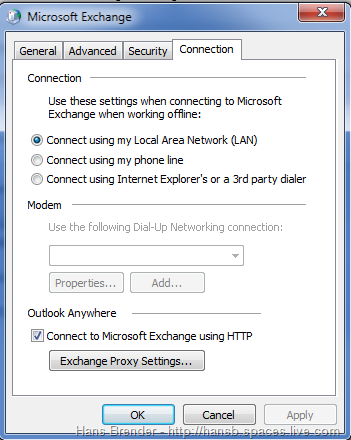 Exchange Proxy Settings (hier die Beispiel-Eintragungen beim Zugriff eines Accounts im Microsoft Netzwerk)