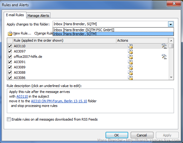 Kalender werden neben- oder sogar übereinander angezeigt. Hier die Regelwerke für beide Exchange-Organisationen: