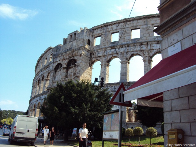 Der Tag wäre mehr als gut gelaufen, wenn, ja wenn der SLK schneller als die Radarpistole gewesen wäre. Isser aber nicht. Recht früh aufgestanden, wir haben heute eine größere Strecke vor uns. Und schon 24° Celsius. Sollte sich aber noch steigern: Im Schatten 32,5° Celsius. Ab in den Süden der Halbinsel Istrien. Bis nach Pula. Dann über Rabac, Rijeka und Senj vorbei an den Inseln Krk und Rab. Und auch Pag, sieht aus wie eine Wüste direkt am Wasser. Nach 403 km sind wir in Starigrad mit dem SLK auf dem Campingplatz eingefahren.