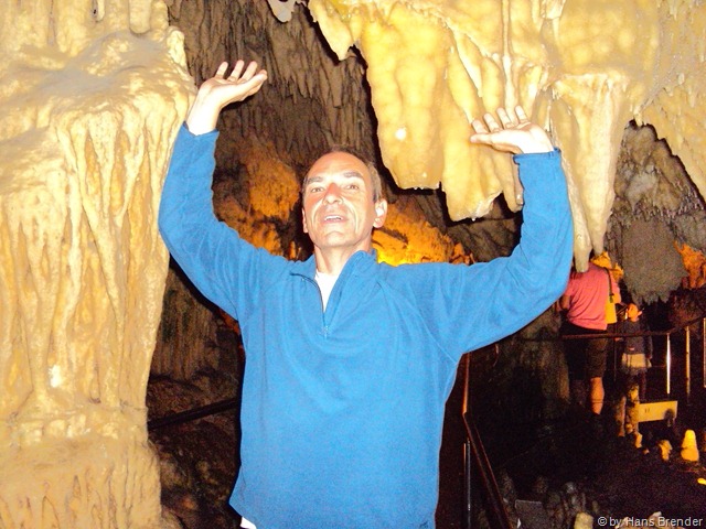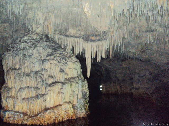 5.7.2010Der Weg ist das Ziel. Also weiter der Küste entlang. Über Koroni haben wir den ersten Finger der Peleponnes hinter uns und es geht erst mal nach Norden immer dem Messinnischen Golf entlang. In Kalamata haben wir dann den östlichen Teil erreicht. Hier finden wir auch eine Tankstelle mit “Kaffee und Wasch” und lassen jetzt dem SLK eine besondere Wäsche angedeihen. Während wir kühle Getränke zu uns nehmen wird das Cabrio von 6! Personen eingeseift und von jedem Staub befreit und von Hand auch an allen Stellen trocken gelegt. Die Wäsche hat ohne Trinkgeld nur 6 € gekostet. Wir waren so von den Socken, dass wir vergessen haben, Fotos zu machen. Mit einem blitzenden SLK weiter nach Süden, über Kardamili, Areopoli ändert sich dann schlagartig die Landschaft. In der Mittagshitze von 33,5° Celsius fahren wir eine Serpentine nach der anderen bis wir dann die Höhle von Pirgos Dirou erreichen und einmal für eine halbe Stunde von der Oberfläche verschwinden.