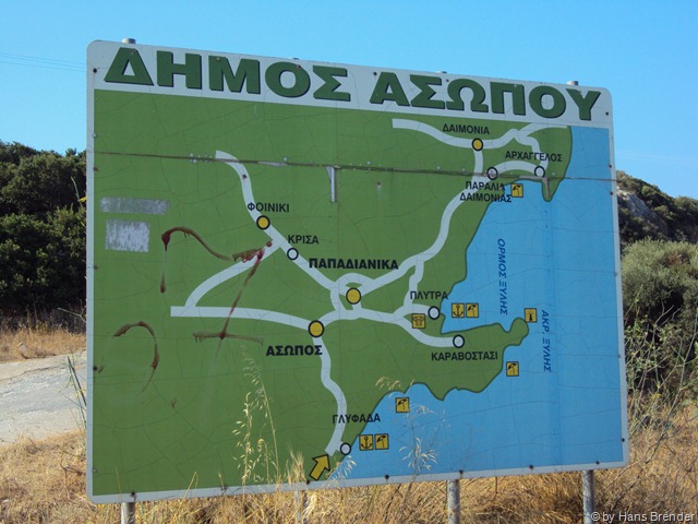 Wir waren in Neapoli, und ganz an der Spitze in Velanidia ging es 20% runter. Kurz vorm Meer stand dann auch ein Schild: Vorsicht vor dem Ins Meer rutschen.