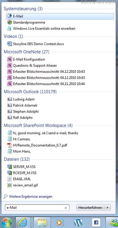 Windows 7 / Windows Vista: Geben Sie oben rechts ins Suchfeld E-Mail ein.