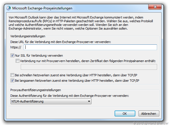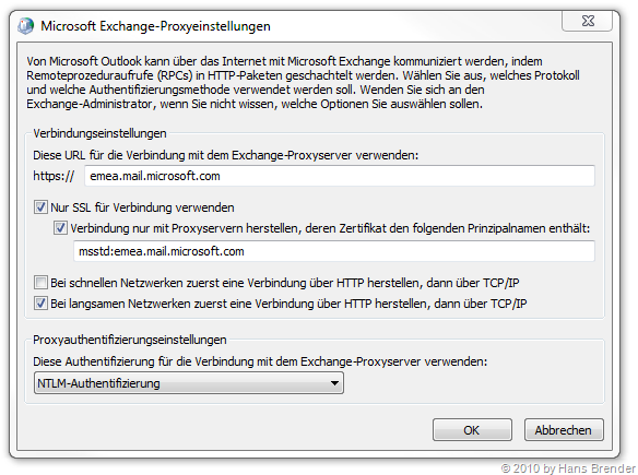 Ich habe aber das Problem, dass mein Outlook sich nicht an Exchange 2010 verbinden will.