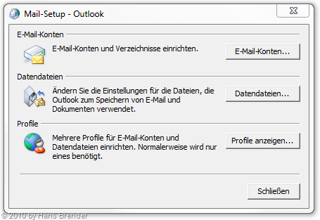 | Mail-Setup Outlook: Klicken Sie auf Profile anzeigen |