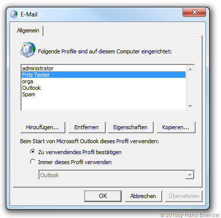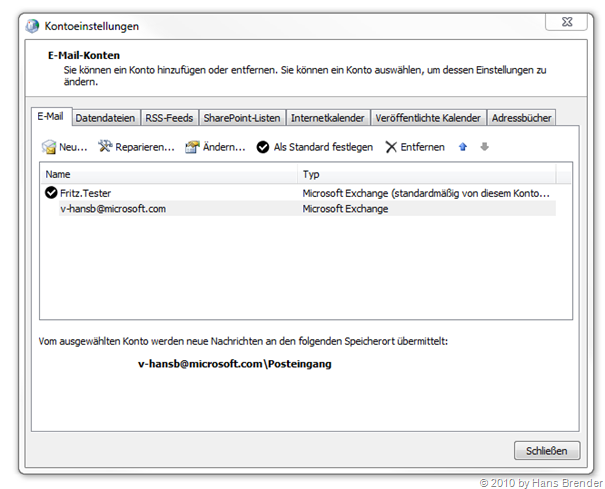 Super – aber jetzt habe ich noch eine Frage. Ich muss die mails von 2 unterschiedlichen Exchange Postfächern lesen und beantworten. Anstatt sie beide zusammenzuführen hätte ich einfach gern 2 getrennte Outlooks mit jeweils einem Postfach und nicht kombiniert. Kann ich das mit Outlook 2010? Oder kann ich da nur beide Postfächer zusammen über ein Postfach verwalten?