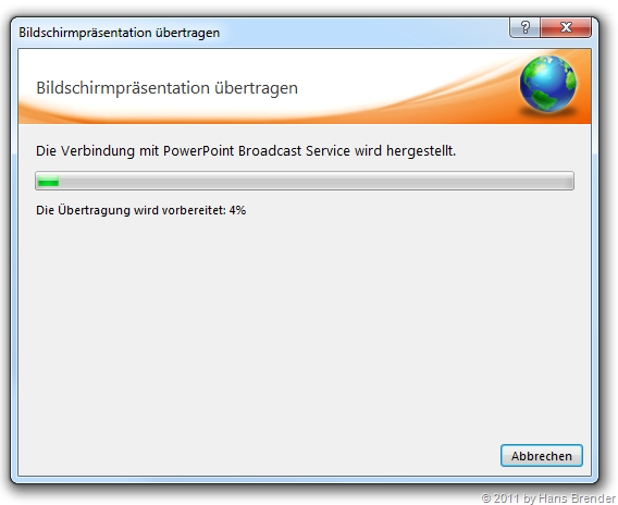 | Startbildschirm für die Übertragung der PowerPoint 2010 Präsentation | |
