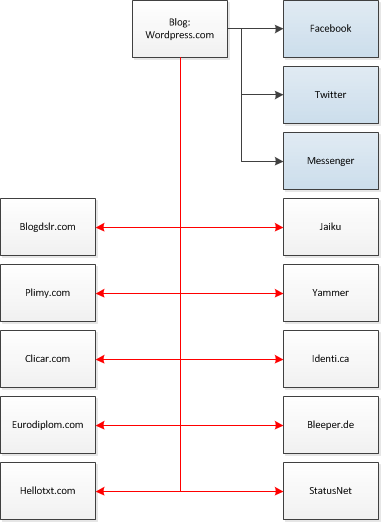 Natürlich gibt es im Web 2.0 verschiedene Plattformen, die alle mehr oder weniger miteinander verknüpfbar sind. Aber die Implementierung ist unterschiedlich und funktioniert nicht immer. Und wenn man dann bei längerer Suche bei den Micro-Blogging Diensten wie Status.net angelangt ist, wird man mit immer neuen Herausforderungen konfrontiert. Und das Netz lebt. Wenn Sie diesen Artikel lesen, kann es schon wieder sein, dass der eine oder andere Dienst eingestellt wurde oder ein neuer auf dem Markt auftaucht.