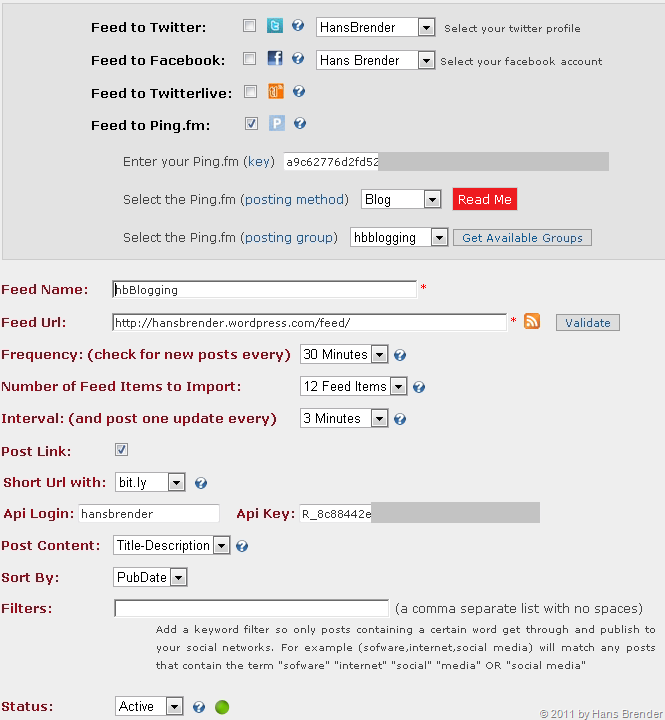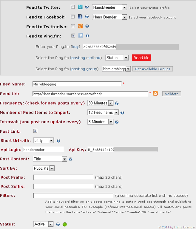 Hier wird nur der Ping.fm mit Informationen versorgt. Gebraucht werden