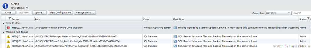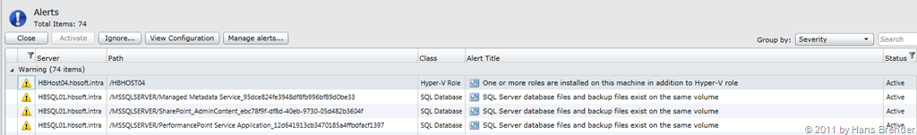 Es sind jede Menge Menge Alarm-Meldungen im System Center Advisor hinterlegt, die dann mit den aktuellen Servern und deren Zustand verglichen werden und wenn notwendig, zu einem Alarm oder einer Warnung, wie oben angezeigt, ausgelöst werden.