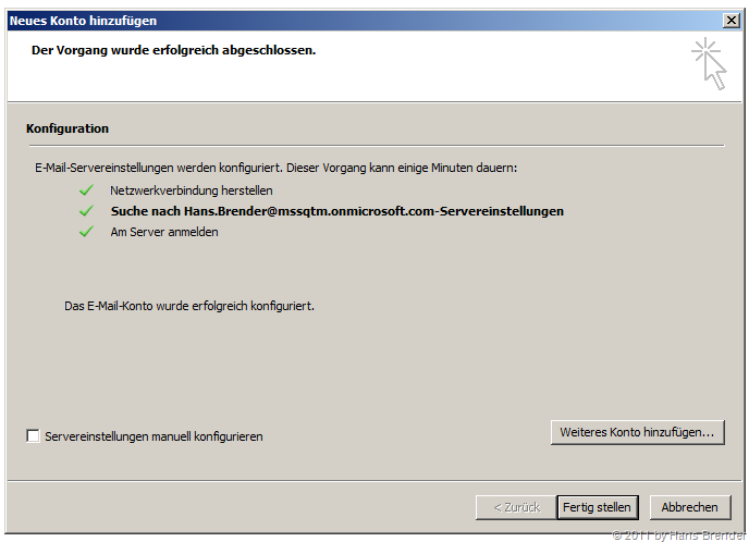 Sie sehen, wie einfach es ist, ein neues Exchange-Konto (hier ein Exchange-Online Konto aus Office 365 ) ihrem bestehenden Outlook 2010. Bei Outlook 2007 gibt es die Einschränkung, dass Sie nur eine Exchange-Organisation verwalten können. Hier müssen Sie leider mit unterschiedlichen Outlook Profilen arbeiten. Die letzte Abbildung zeigt, dass ich mit 4 verschiedenen Exchange-Organisationen innerhalb eines Outlook 2010 Profils arbeite.