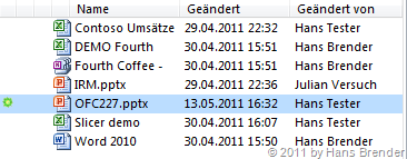 Anzeige von neuen Inhalten in SharePoint Workspace Arbeitsbereich vor der Datei