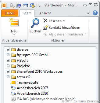 Arbeitsbereich einer synchroniserten Website in SharePoint Workspace 2010