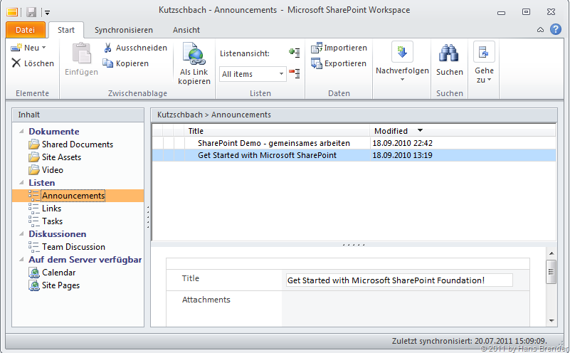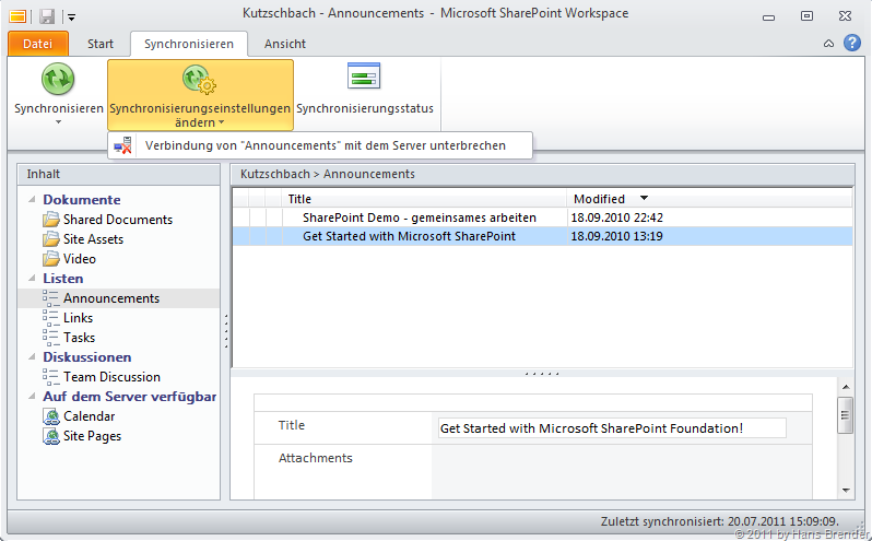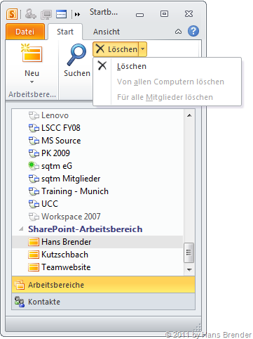 Das Ganze gilt für alle SharePoint-Arbeitsbereiche, die Sie in SharePoint Workspace 2010 synchronisieren.