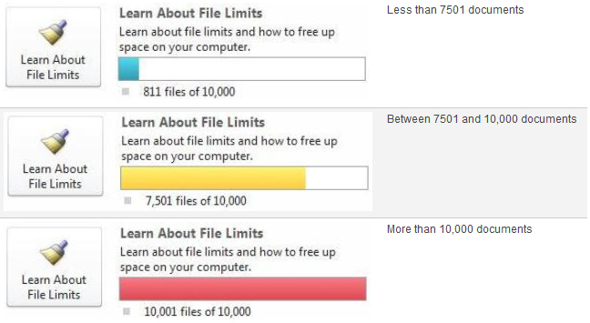 Mit der Service Pack 1 zu Office 2010 hat Microsoft hat die Anzahl der synchronisierten Dokumente in SharePoint Workspace erheblich gesteigert. Der Anwender erhält im Backstage-Bereich farbige Warnungen und kann mittels “Handarbeit” die Anzahl der zu synchronisierenden Dokumente einschränken.