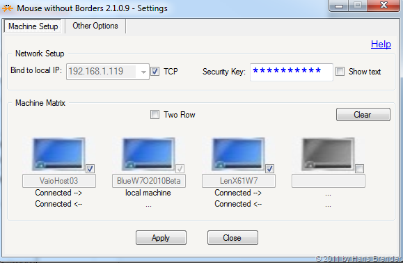 Wow, selten bin ich von einer Software so begeistert wie von dieser bei Microsoft im Garagen Projekt entstandenen Software. Sie erlaubt mit einer Tastatur und einer Mouse an verschiedenen PC’s zu arbeiten. Kein Schalter, einfach über die Grenzen des Bildschirms zum nächsten PC wechseln. Die Maschine, die den Mouse-Focus hat, bekommt auch die Tastatur. doch der Reihe nach: zuerst muss ein 1.1 MB kleines msi-Paket installiert werden. Die Software kann hier heruntergeladen werden. Leider fehlt dort eine wichtige Seite. Die Erklärung. Und wo ich Hilfe bekomme. Nach der Installation habe ich nämlich gleich eine Fehlermeldung erhalten, und stand im Dunkeln. Also gleich einmal den nächsten Rechner genommen, hier lief alles glatt. Und dann habe ich auch gesehen, wo man Hilfe bekommt. Hier der Link was war bei meinem ersten Rechner passiert?