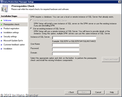 SC 2012 DPM: Remot SQL Server Hier die Auswahl des SQL Servers (Remote)