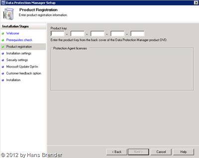 SC 2012 DPM: Eingabe Lizenzschlüssel Hier muss der richtige Lizenz-Key eingetragen werden.