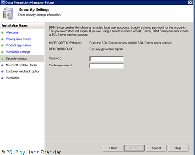 SC 2012 DPM: Passwort Eingabe Für den lokalen Benutzer Account wird ein Password benötigt.