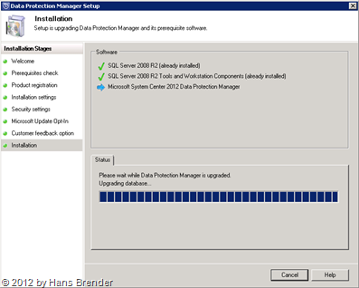 SC 2012 DPM: Upgrade der lokalen Installtion Der vorhandene SCDPM 2010 auf SCDPM 2012 angehoben.