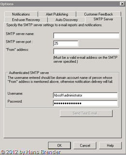 SC 20120 DPM Administrator Console: Optionen Hier sind ein gültiger SMTP Server und eine gültige E-Mail Adresse einzutragen.
