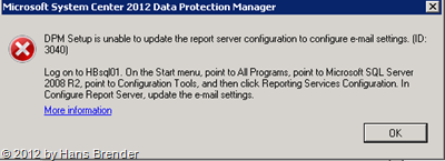 SC 2012 DPM: Fehlermeldung (falsche Aussage) wie oben schon beschrieben, die SQL Server Reporting Services laufen. Es fehlt ein Port-Freigabe in der Firewall des SQL Servers.Leider merkt sich Der Update-Assistent nichts. Also nochmal das ganze…