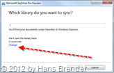 Änderung des Pfades danach geht derzeit auch nicht. Mann kann auch nicht eine Synchronisation aufheben, den Pfad ändern und auf eine bestehenden Ordner (mit Inhalt) verweisen. SkyDrive Pro legt dann einen neuen Ordner an. |
