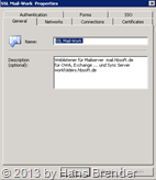 Exchange Server verlangt beim Protokoll Outlook Web Access (OWA) SSL Verschlüsselung. Für den Zugriff muss öffentlich ein DNS Eintrag beim Provider eingerichtet werden. Der Sync- Server benötigt für die Work Folders ebenfalls einen öffentlichen DNS Eintrag - mail.contoso.com