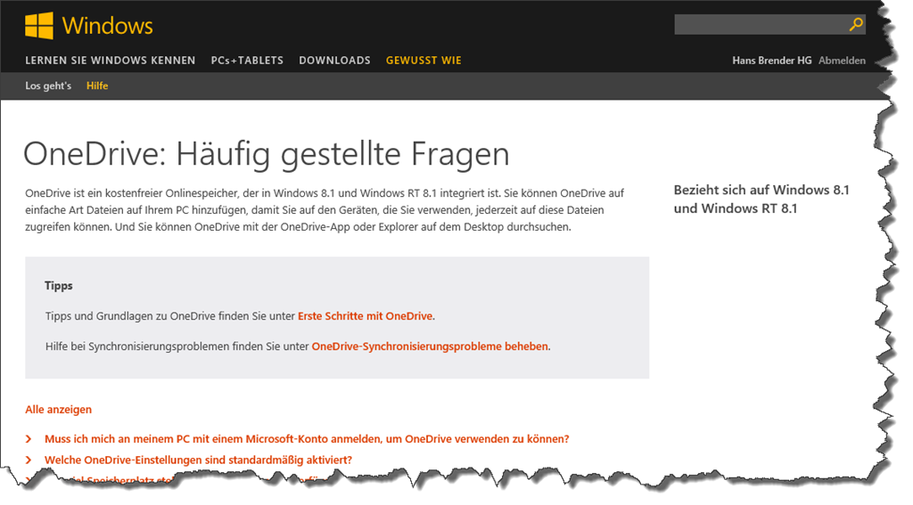 | Windows 8.1 | OneDrive: Häufig gestellte Fragen | ![]() |