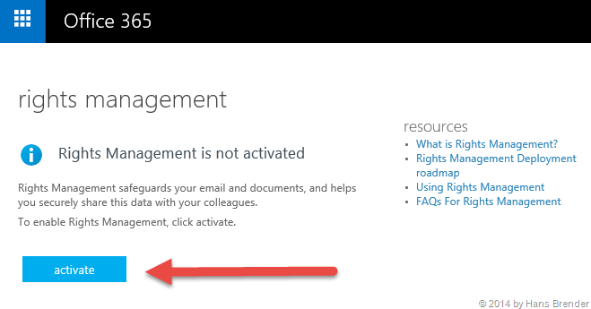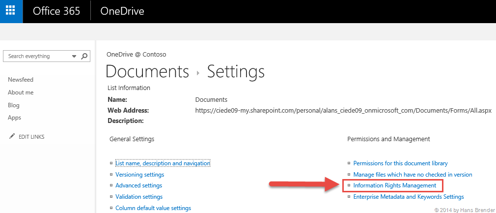 Es kann noch bis zum Jahreswechsel 2014/2015 dauern, je nach Einstellungen in ihrem Office 365 Tenant. Dann kann jede Dokumenten-Bibliothek in SharePoint Online mit IRM geschützt werden. Und, wie wir später sehen können, auch zu meiner Offline-Bibliothek OneDrive for Business auf meinem Rechner synchronisiert werden. Das hat Microsoft auf seinem Office Blog am 19.11.2014 verkündet