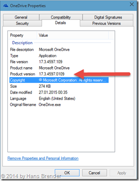 | the actual version of the next generation Sync client OneDrive.exe is 17.3.4597.0109 |