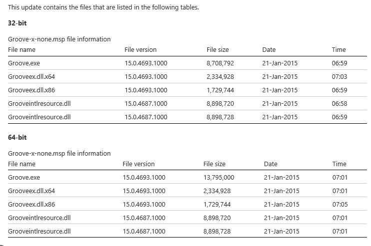 | Groove.exe (December 2014 Update) | Groove.exe (February Update) |