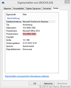 During the February patches there is a patch for our Groove.exe. You know, that is the fundamental .exe for OneDrive for Business. The patch has the number KB2970746 and was released by Microsoft on 02/10/2015. You only need this path, if your Office 2013 installation was a MSI package, you do not need this patch , if you installed Office 2013 as a Click 2 Run.(f.e. Microsoft Office 365 Home)