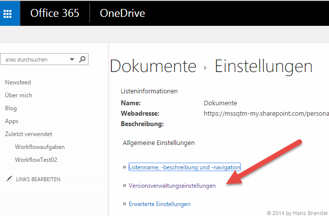 Standardmäßig ist in der Cloud die Versionshistorie eingeschaltet.