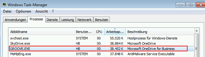 Starten Sie den Taskmanager, wechseln Sie auf Prozesse und suchen Sie nach Groove.exe