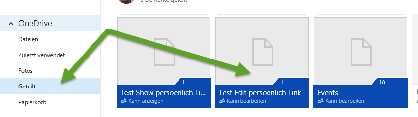 So hat man auch gleich die Übersicht, da die geteilten Ordner im SharePoint-Orner liegen.