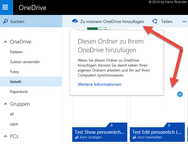 Geteilte Ordner in OneDrive vor Businesss oder School geht recht einfach in zwei Klicks: