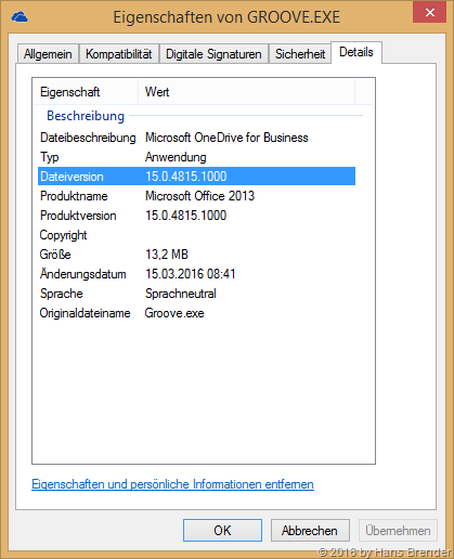 Für den Blog Post OneDrive for Business | Next Generation Sync Client – April News habe ich für einen Test eine virtuelle Maschine mit Windows 8.1 und dem C2R Paket von OneDrive for Business (Groove.exe) installiert. Die zeigte schon vor dem 4.4.2016 die Versions-Nummer 15.0.4815.1000