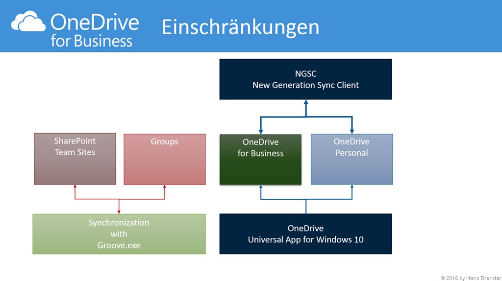 Genau das war m.E.n. der größte Fehler von allem: Hinter OD4B SharePoint technologie zu pflanzen. Ein unsäglich unausgegorenes Produkt voller Fallstricken und wirklich unnötigen Einschränkungen.
