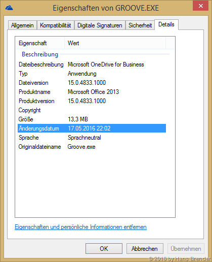 Der Name des Synchronisations-Client für OneDrive for Business ist Groove.exe und befindet sich im Programm-Verzeichnis: X:\Program Files\Microsoft Office\Office15