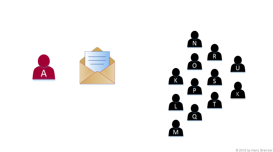 Ein Beispiel: Die Vertriebsmannschaft besteht aus 20 Mitarbeitern und und der Vertriebsleiter “Egon Vertrieb” möchte 8 Mitarbeiter einzelne Aufgaben und Informationen per E-Mail zukommen lassen. Der Einfachheit halber wählt er in der An-Zeile die Verteiler-Liste: Vertrieb. Damit ist sichergestellt, dass die 8 ausgewählten Mitarbeiter diese E-Mail auch bekommen. Im Text der Mail werden die 8 Mitarbeiter auch angesprochen und die Informationen und Aufgaben beschrieben.