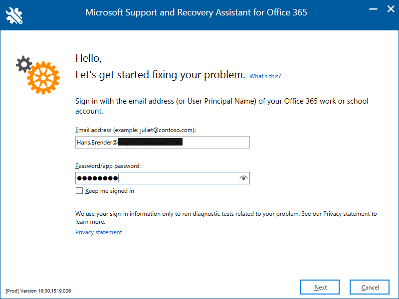 Microsoft Support und Wiederherstellungs-Assistent für Office 365