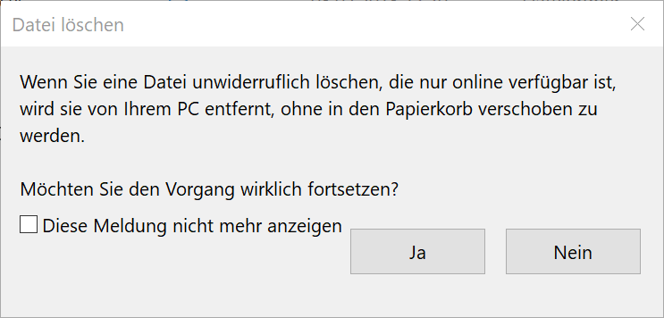 Dieser Dialog wird nur angezeigt in Windows 10 Version 1709 oder höher UND mit aktivierten Files on Demand