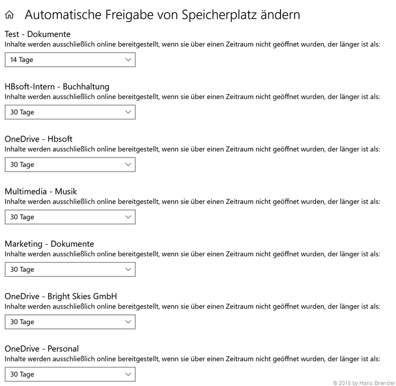 Bedeutet: Mindestens alle 30 Tage wird aufgeräumt, in dem diese Dateien,also die die lokal verfügbar sind und beim letzten Mal geöffnet wurden, umgewandelt werden. Es wird also nicht das Erstellungsdatum der Datei, sondern die letzte Bearbeitung untersucht. Die betroffenen Dateien werden dann in den Status “Nur Offline verfügbar” umgewandelt. Belegen also keinen Platz mehr auf genau diesem Windows 10 Gerät.