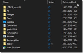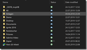 Wenn ich eine neu erstellt Datei speichern und den Ort dabei ändern möchte, wird eine DLL Datei benutzt, welche auch von anderen Programm-Herstellern benutzt wird. Das habe ich ausprobiert, um Office als Übeltäter auszuschließen. Und währen der Auswahl sind alle angezeigten Verzeichnisse und /oder Dateien immer im Synchronisationsstatus. Egal, welche Version von Windows ich ausprobiere. Alle haben das gleiche Ergebnis. Mit einer Ausnahme: Windows 10 Insider mit der Build-Nummer 18945.