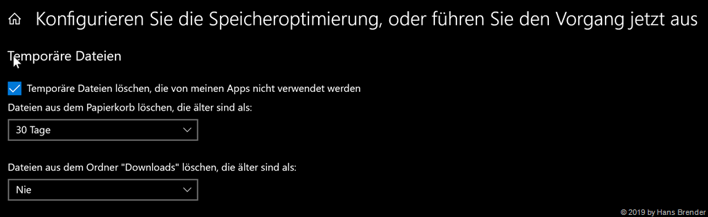 Viele Administratoren wissen das jedoch nicht. Da ab der Windows Version 1903 den Administratoren weitere Windows Gruppenrichtlinien zur Verfügung stehen, wo dieses Aufräumen einheitlich für die gesamte Firma eingestellt wird, sollten Sie trotzdem wissen. Sind keine Einstellung in den Systemeinstellungen hinterlegt, sollten Sie selbst dann ab und an manuell aufräumen.