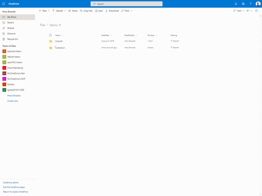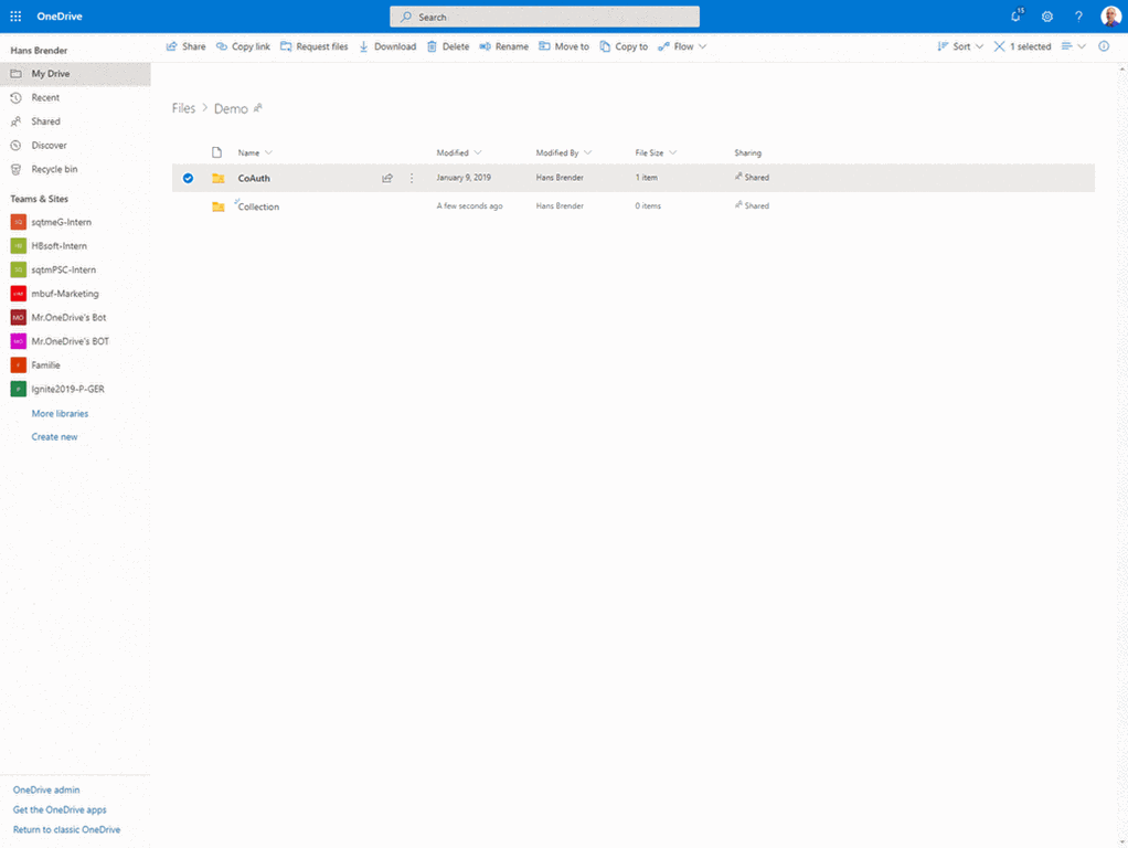 Switch to the browser and call OneDrive (for Business).