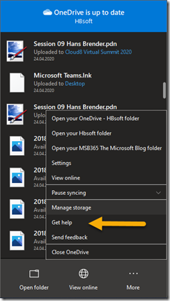 In the English language we also speak of the Deferred-Ring. In this channel they receive the least updates. Another novelty with the version 20.052.0311.0010 I have already described at the beginning of April 2020: The access to the history version of a file. As described there, I have certain bugs there that I reported to the OneDrive product group, but even in the latest insider version these bugs are not fixed yet. They have also worked on reducing the warnings of the synchronization delay. These occurred more frequently during the Corona crisis. And finally one has improved the help.