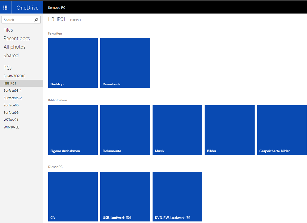In the left menu I select the computer on which OneDrive Personal is also installed. After a possible security check, I have access to the computer: