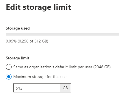 Ändern des OneDrive Speicherplatzes eines bestimmten Benutzers |